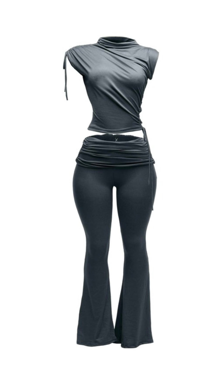 Description: Experience ultimate comfort and style with the Aziza Baddie Set. Made from a stretchy fabric, this set features a mock neck and bell bottom pants with a drawstring and ruching detail for a flattering fit. The pants also have a comfortable inseam of 33 inches. Made with 96% Polyester and 4% Spandex for a perfect blend of comfort and style.