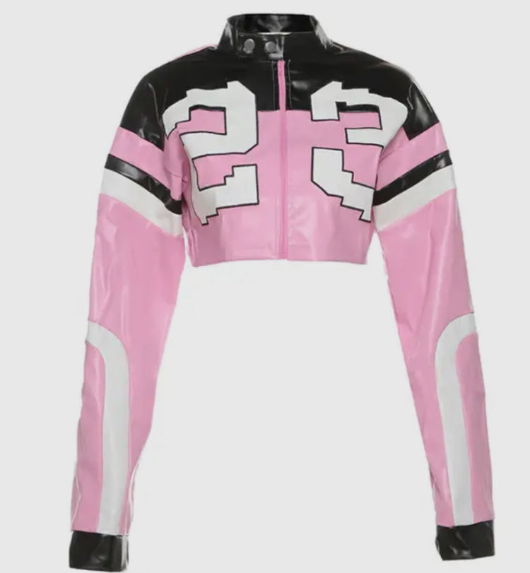Description: Introducing the Baddie 23 Varsity Jacket, a stylish and versatile option for any fashion-forward individual. Made with a unique faux leather material and stretch capabilities, this varsity jacket offers both comfort and durability. Featuring a convenient front zipper, it is the perfect addition to any wardrobe. Made from 55% polyurethane and 45% polyester, this jacket is a must-have for any trendy look.