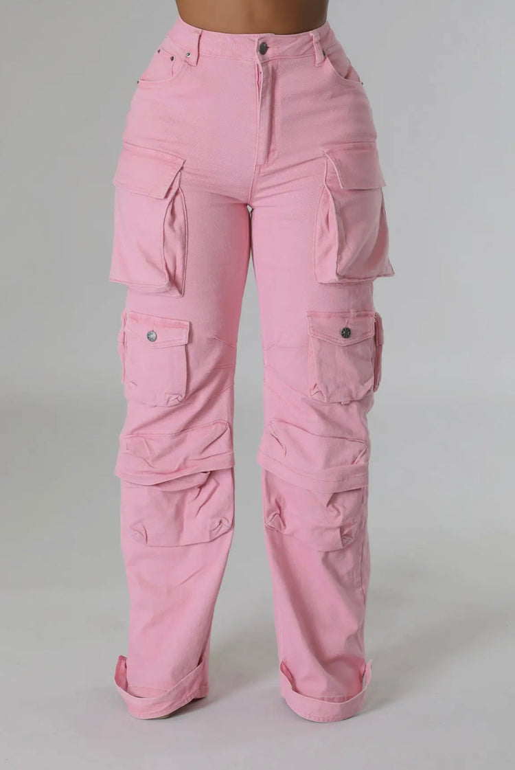 Description: Discover the ultimate combination of style and functionality with our Baddie Denim Cargo Pants. These pink multi pocket cargo pants are made from a soft stretchy fabric, providing all-day comfort and flexibility. Stay organized with the multiple pockets while looking effortlessly stylish. Perfect for everyday wear.