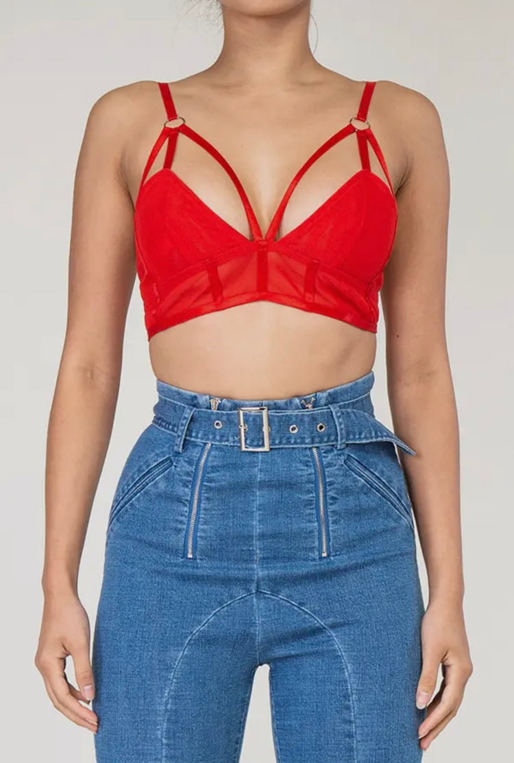 Description: The Robin Baddie Bralette Bustier Top is a stylish and comfortable addition to your wardrobe. Featuring a strappy design, adjustable shoulder straps, and a lightweight, breathable mesh fabric, this semi-sheer top is both fashionable and functional. Perfect for any occasion, it fits true to size and is sure to make you stand out in a crowd.